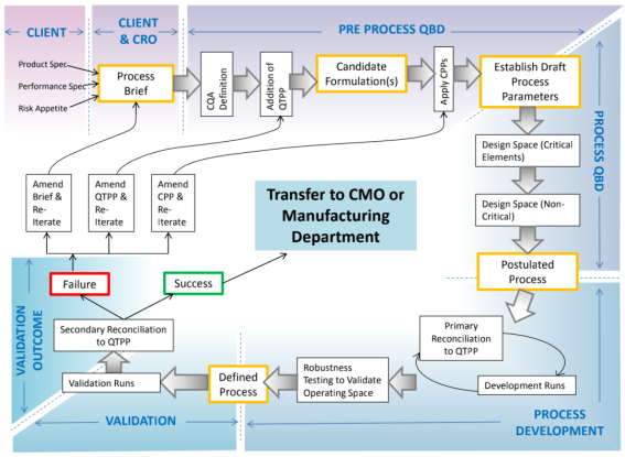 基于PAT ICH Q8/Q9/Q10準(zhǔn)則對(duì)QbD的規(guī)范法案中可以看出,產(chǎn)品與過程的性能特征都需要經(jīng)過科學(xué)設(shè)計(jì)以滿足特定目標(biāo),而不是憑經(jīng)驗(yàn)從實(shí)驗(yàn)中推導(dǎo)。