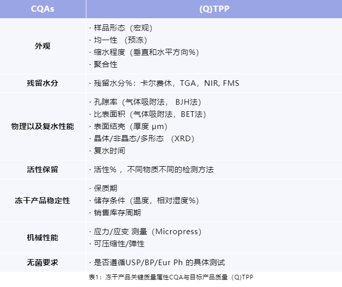 示例:凍干產(chǎn)品關(guān)鍵質(zhì)量屬性與目標(biāo)產(chǎn)品質(zhì)量