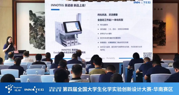 除此之外,德祥科技旗下英諾德資深產(chǎn)品經(jīng)理沈瑤發(fā)表了以《創(chuàng)新科技助力化學(xué)研究高效、綠色發(fā)展》為主題的演講,為到場(chǎng)的高校師生介紹INNOTEG英諾德產(chǎn)品是如何賦能化學(xué)創(chuàng)新研究。