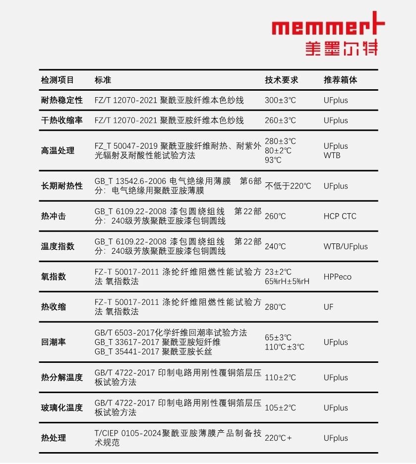全球貿(mào)易格局調(diào)整下的化學(xué)化工行業(yè)正處于深刻變革之中,Memmert的烘箱、真空烘箱及恒溫恒濕箱以其穩(wěn)定的溫控與卓越的性能幫助企業(yè)積極應(yīng)對挑戰(zhàn),把握機(jī)遇,加強(qiáng)技術(shù)創(chuàng)新、拓展多元市場等策略,提升自身的競爭力和抗風(fēng)險能力,在新的貿(mào)易環(huán)境中實現(xiàn)可持續(xù)發(fā)展。就前述聚酰亞胺PI而言,常用的檢測要求如下: