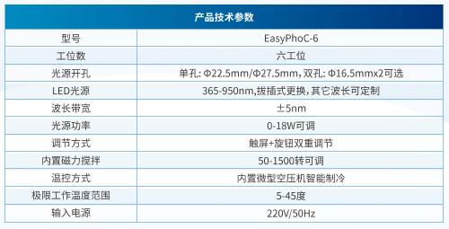 · 內(nèi)置磁力攪拌器50~-1500RPM可調(diào),主要用于藥物合成與篩選、材料修飾、生物改性等 多領(lǐng)域光催化反應(yīng)的科學(xué)研究
