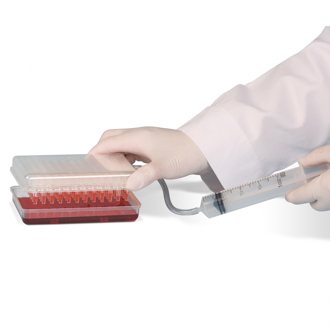 ? 只需連接一次性塑料注射器并抽出柱塞即可轉(zhuǎn)移液體