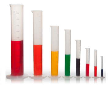這些量筒有一個(gè)公制刻度,上面有凸起的數(shù)字,便于閱讀。