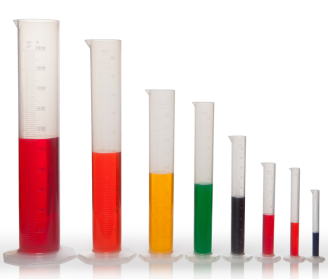 這些量筒有一個(gè)公制刻度,上面有凸起的數(shù)字,便于閱讀。